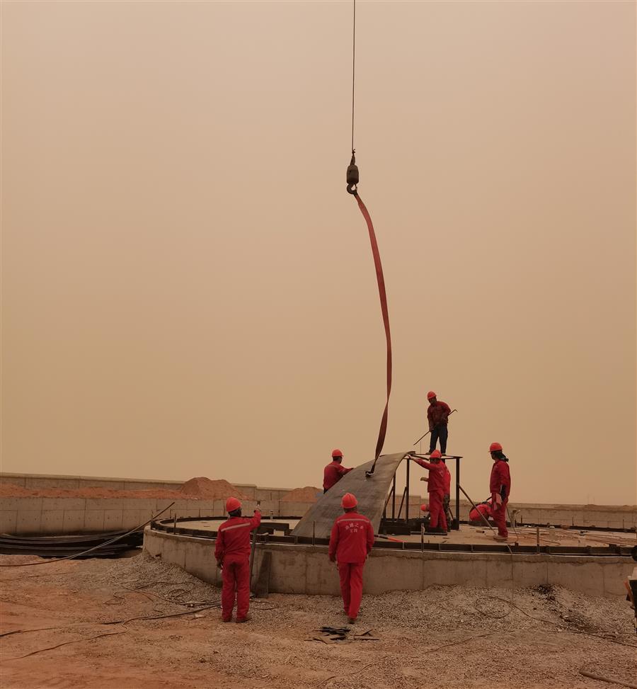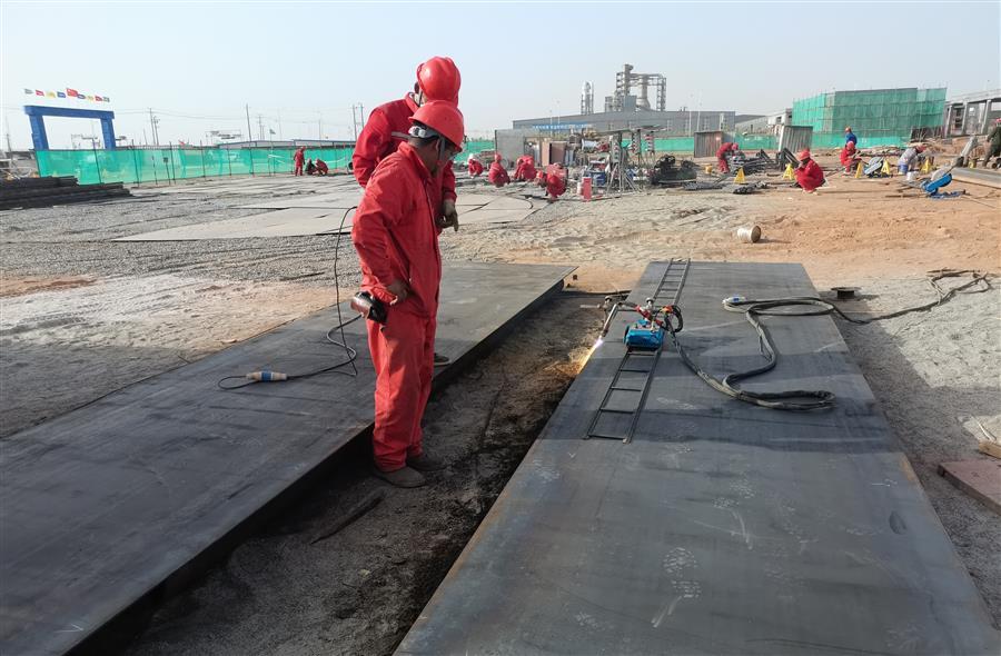 為了保障工程進(jìn)度,在確保安全和質(zhì)量的前提下,建設(shè)者們?nèi)找箠^戰(zhàn)在項(xiàng)目工地,全力加快項(xiàng)目建設(shè)。目前,項(xiàng)目整體進(jìn)度完成55%,廠房配套臨建主體設(shè)施完成65%,1500方儲油罐體焊接已完成10個(gè),完成項(xiàng)目整體罐體焊接55%。剩余工藝管道配套管網(wǎng)正在場外工廠緊鑼密鼓地進(jìn)行生產(chǎn)加工,隨后運(yùn)到廠區(qū)進(jìn)行拼接組裝。