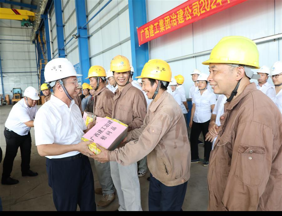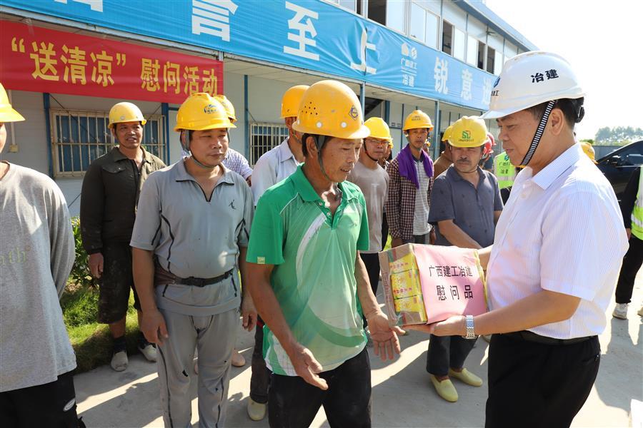 8月7日,冶建公司董事長、黨委書記覃振華,總經(jīng)理、黨委副書記蒙勝益分別到壓力容器制造廠、柳州市柳東新區(qū)明德小學項目開展“送清涼”慰問活動。