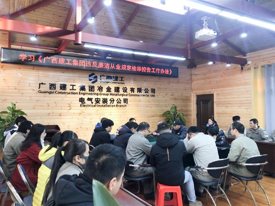 11月30日上午,電氣安裝分公司召開會議,組織學習《廣西建工集團違反廉潔從業(yè)規(guī)定檢舉控告工作辦法》(以下簡稱《辦法》)。